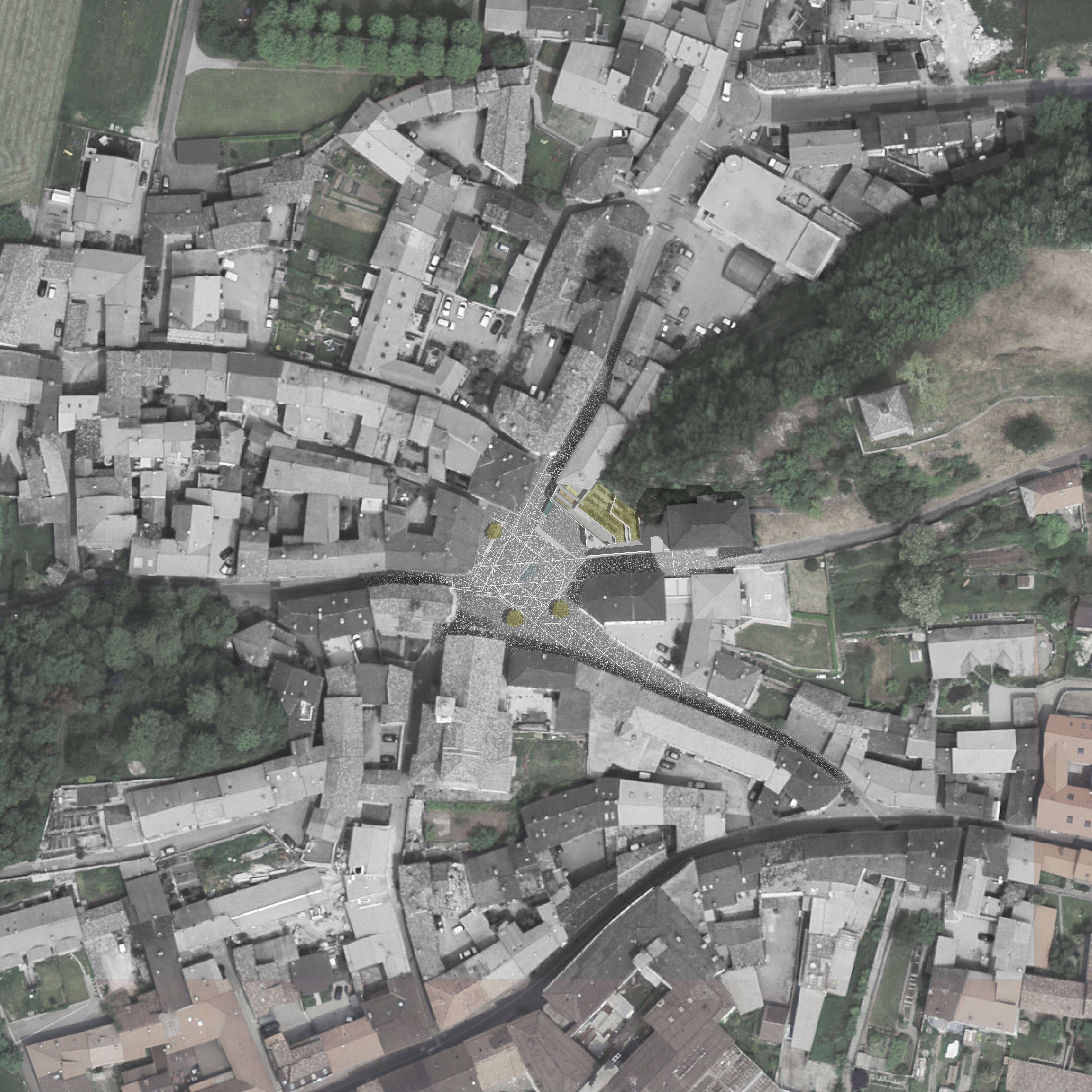 Il progetto vuole restituire alla piazza il suo valore baricentrico rispetto al paese attraverso la valorizzazione del vuoto quale luogo collettivo.